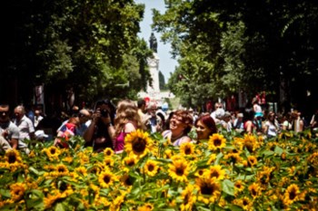 A Avenida da Liberdade está repleta, e desta vez não são os carros que entopem a principal artéria de Lisboa. São os burros e os girassóis, os canteiros de salsa e as oliveiras. E gente, milhares de pessoas.